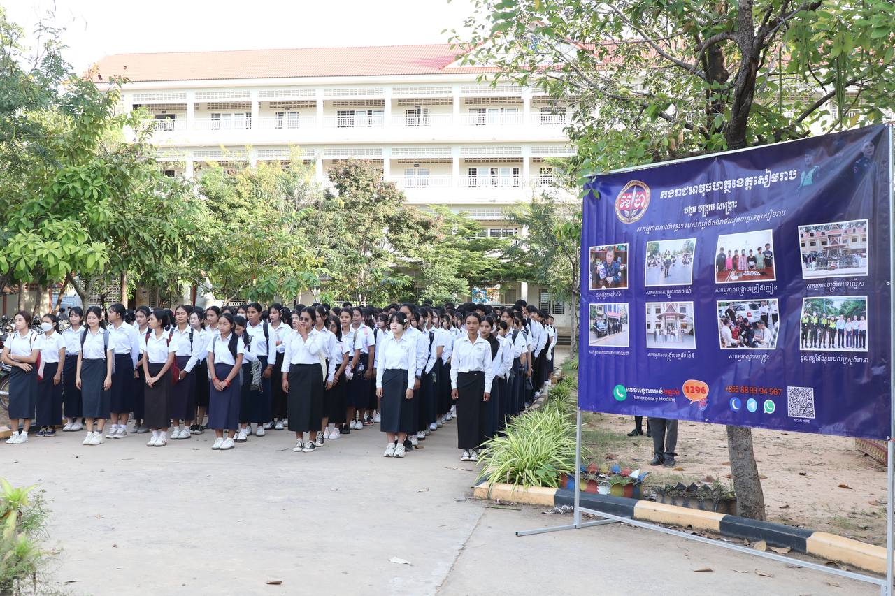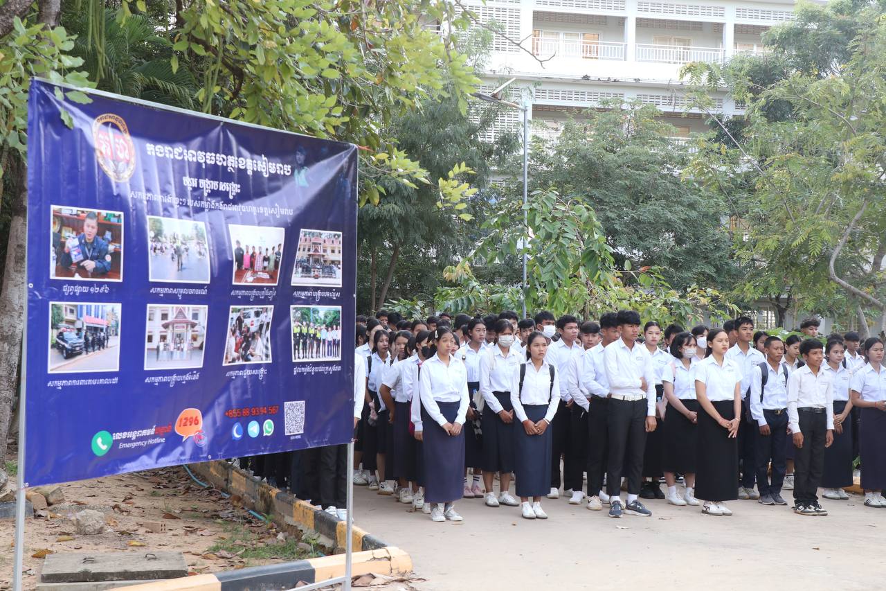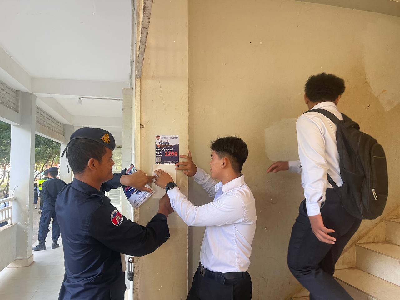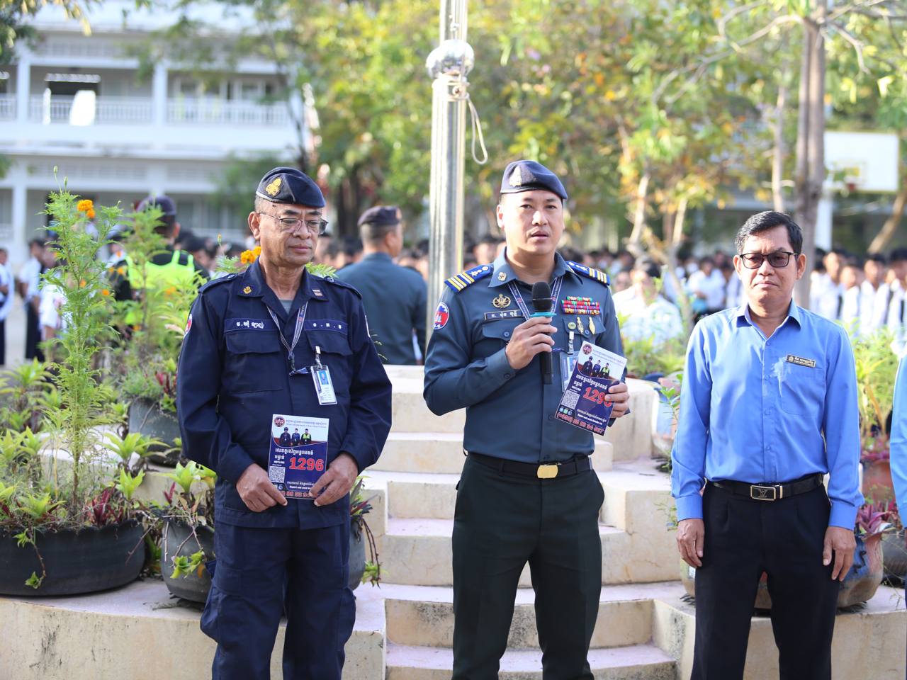 លោក ឧត្តមសេនីយ៍ត្រី សៀ ទីន មេបញ្ជាការ កងរាជអាវុធហត្ថខេត្តសៀមរាប បានចាត់ឱ្យក្រុមការងារបន្តយុទ្ធនាការ ចុះចែកខិត្តប័ណ្ណ នាមប័ណ្ណ និងបិទស្ទិកគ័រផ្សព្វផ្សាយប្រព័ន្ធលេខទូរស័ព្ទ (Hotline)1296 ជូនដល់លោកនាយក លោកគ្រូ អ្នកគ្រូ សិស្សានុសិស្ស នៃវិទ្យាល័យ ហ៊ុន សែន វត្តស្វាយ ស្ថិតនៅភូមិវត្តស្វាយ សង្កាត់សាលាកំរើក ក្រុងសៀមរាប ខេត្តសៀមរាប។